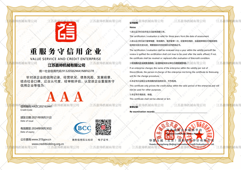 “以質量求生存,以信譽求發展”是我公司的一貫宗旨。以用戶為先,竭誠為機械行業基礎建設者服務,使我們的職責和愿望。提供優良的質量,完善的售后服務,滿足客戶的需求是我們追求的目標。公司堅持以市場為導向,以服務搶先機,電商和實體相結合的企業精神,在未來,努力將嘉帥機械打造成機械制造的知名企業。